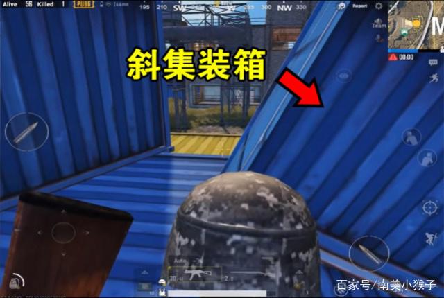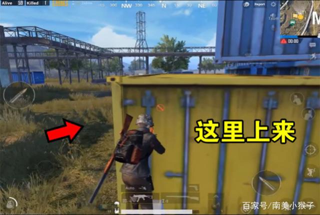 其實(shí)就在黃色集裝箱旁邊有個(gè)小臺(tái)階,跳上來就可以爬上集裝箱,往右邊走便可以看到剛剛的斜集裝箱,藏在里面很難被敵人發(fā)現(xiàn)的。當(dāng)然這種集裝箱還不止這里有,N港也有哦!