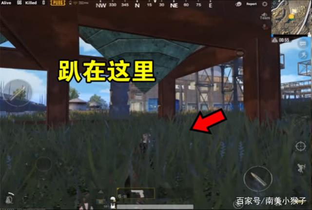 最后一個(gè)位置則是剛剛的大圓柱底部,這里也是一個(gè)藏身好位置。因?yàn)檫@里的草地比較高,甚至比別的地方的草還隱蔽。藏在這里可以觀察鋼鐵廠里的動(dòng)向,如果發(fā)現(xiàn)有敵人從另個(gè)出口出去了,我們也可以往圍墻外跟過去!