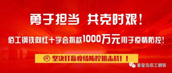2020年2月6日,秦皇島佰工鋼鐵有限公司向盧龍縣紅十字會捐款1000萬元,用于抗擊新型冠狀病毒肺炎疫情的防治工作。