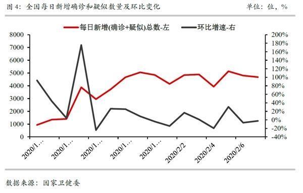 所以,這里面有兩個(gè)曲線作為判斷觀點(diǎn)的指標(biāo),也就是每日確診和每日疑似的數(shù)量。受檢測數(shù)量的限制,將兩者加總成一條曲線,更能說明問題。