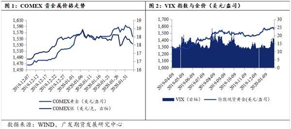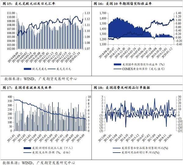 總的來看,1月份外盤貴金屬(尤其是黃金價(jià)格)價(jià)格大幅上漲主要受到全球避險(xiǎn)情緒升溫的刺激,具體而言來自兩個(gè)方面。一方面,1月3日凌晨,美軍一架無人機(jī)在伊拉克首都巴格達(dá)國(guó)際機(jī)場(chǎng)附近炸死了伊朗伊斯蘭革命衛(wèi)隊(duì)“圣城旅”指揮官卡西姆·蘇萊曼尼,這一事件震驚全球,導(dǎo)致美伊之間關(guān)系劍拔弩張,全球資本市場(chǎng)避險(xiǎn)情緒急劇上升,貴金屬價(jià)格大幅上漲;后續(xù)隨著美伊之間緊張關(guān)系降溫,貴金屬價(jià)格亦高位回落。而到1月下旬時(shí),由于中國(guó)新型冠狀病毒肺炎疫情在全國(guó)呈蔓延擴(kuò)散之勢(shì),投資者擔(dān)心疫情擴(kuò)散對(duì)中國(guó)乃至全球經(jīng)濟(jì)造成巨大負(fù)面沖擊,全球股市(尤其是亞洲股市)均出現(xiàn)恐慌性下跌,避險(xiǎn)情緒再度升溫,貴金屬價(jià)格再次拉高。展望后續(xù)貴金屬價(jià)格的走勢(shì),本文從全球避險(xiǎn)情緒、美國(guó)宏觀經(jīng)濟(jì)基本面以及持倉(cāng)數(shù)據(jù)等方面進(jìn)行分析。