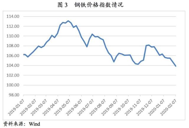 復(fù)產(chǎn)復(fù)工推遲、返程不暢、返程隔離措施導(dǎo)致房地產(chǎn)和基建開工時(shí)間延遲、施工進(jìn)度放緩,同時(shí)導(dǎo)致下游汽車、機(jī)械行業(yè)產(chǎn)量下行,鋼材出口規(guī)??赡芤矔?huì)受到疫情影響,導(dǎo)致鋼材市場(chǎng)需求短期甚至一季度內(nèi)下降。疊加產(chǎn)成品運(yùn)輸不暢影響,鋼材社會(huì)庫(kù)存增加、累庫(kù)時(shí)間延長(zhǎng),節(jié)后一周(2月3-6日)鋼材社會(huì)庫(kù)存[1]較上周增加129.91萬(wàn)噸,較上月增加730.81萬(wàn)噸。下游需求和運(yùn)輸兩方面因素會(huì)導(dǎo)致鋼材價(jià)格在短期內(nèi)承壓下行,2月7日國(guó)內(nèi)鋼材價(jià)格指數(shù)103.86,較節(jié)前1月23日的105.48有所下降。
