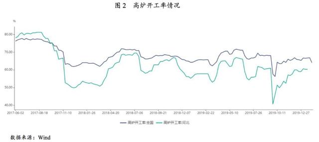 受近年環(huán)保限產(chǎn)政策影響,部分鋼鐵企業(yè)在供暖季結(jié)束前原本就處于減產(chǎn)、限產(chǎn)或停產(chǎn)階段,一季度高爐開工率在全年中處于較低水平。2020年2月第一周,全國(guó)高爐開工率64.09%,環(huán)比下降2.62個(gè)百分點(diǎn),同比下降1.66個(gè)百分點(diǎn),高爐開工率下降幅度較小,疫情未導(dǎo)致鋼鐵企業(yè)大規(guī)模被動(dòng)減產(chǎn)。