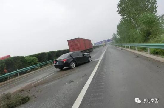 當天下午15時30分左右,一輛黑色小車在通過寧洛高速由西往東方向513公里處時,發(fā)生一起交通事故。趕到現(xiàn)場的漯河市公安局交通管理支隊南洛高速公路執(zhí)勤大隊民警迅速做好現(xiàn)場安全防護工作。小車車頭的左前方受到嚴重損傷,撞壞的高速公路護欄直插引擎蓋內(nèi),所幸無人員傷亡。
