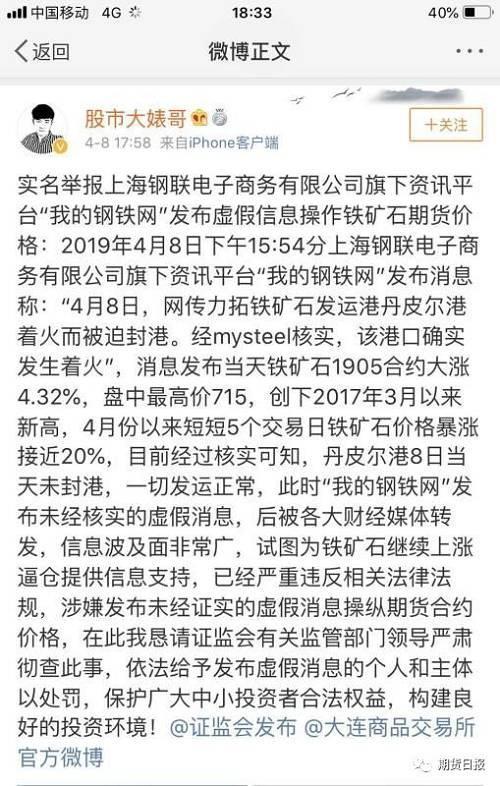 事實上,自1月25日淡水河谷(Vale)發(fā)生潰壩事件以來,關(guān)停水壩增加運營成本、資源開采引發(fā)環(huán)境問題、關(guān)停部分礦山、澳大利亞颶風導(dǎo)致近期鐵礦石發(fā)運量明顯下滑、南美四國聯(lián)合打擊非法采礦等利多鐵礦石的消息層出不窮,鐵礦石期貨價格上漲,來自消息面的刺激不斷。而網(wǎng)傳力拓發(fā)運港著火的消息更是讓鐵礦石價格燃燒了一把。