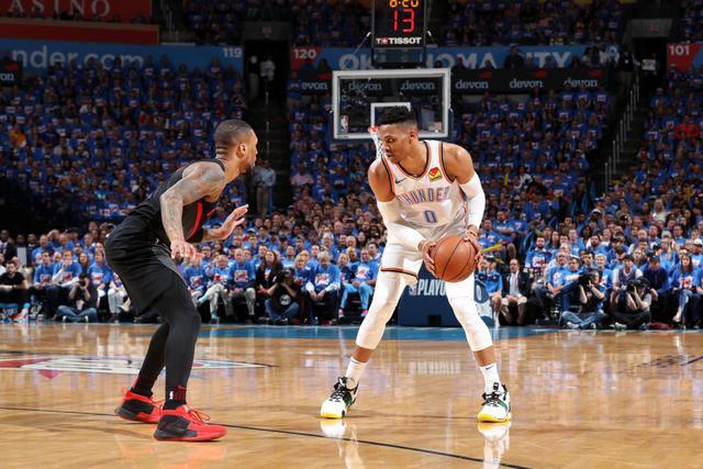 過去一整個(gè)賽季,人們都在調(diào)侃韋斯布魯克的投籃,季后賽前兩場,雷霆大比分0-2落后,其中一個(gè)很重要的原因。就是韋斯布魯克的投籃,那兩場比賽,他的命中率只有35%。而系列賽第三場,雷霆主場贏球,很重要的一個(gè)原因,也是韋斯布魯克的復(fù)蘇,那場比賽,韋斯布魯克全場22投11中,三分球命中率達(dá)到了66.7%。