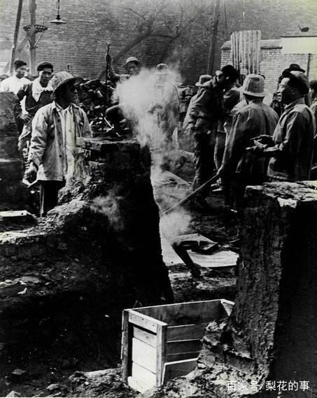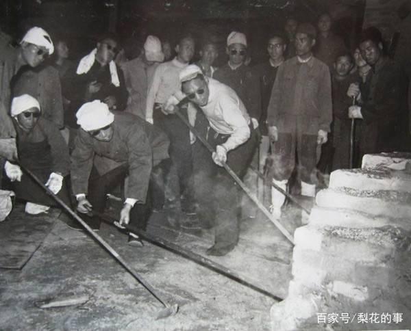 1958年,在這為鋼鐵而戰(zhàn)的年代里,各省省委書(shū)記紛紛親自?huà)鞄?,到鋼鐵戰(zhàn)線(xiàn)的第一線(xiàn)督戰(zhàn)。中共山東省委書(shū)記處書(shū)記譚啟龍(右)正在觀(guān)察中共山東省委新建的第一座小高爐爐內(nèi)礦石熔化過(guò)程。
