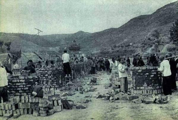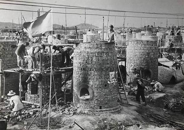1958年,高爐很快就“不夠用了”,博愛(ài)縣紅旗公社民眾在趕筑新高爐。
