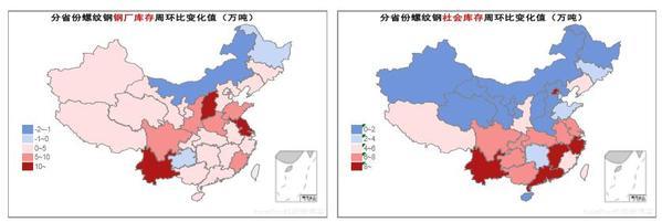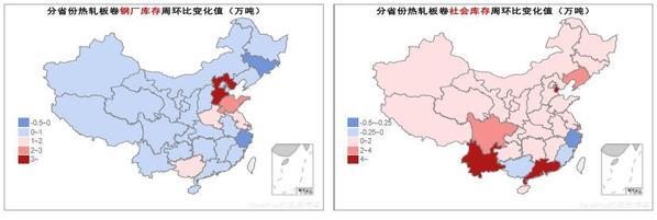 據(jù) Mysteel 統(tǒng)計,建材方面,南方、北方和華東較上期(節(jié)后第三周)相比分別累計增加 35.81 萬噸、30.64 萬 噸、45.25 萬噸。其中江蘇、山西、云南、山西、四川和福建為主要增庫省份,五省累計增加 87.81 萬噸。詳細(xì)來看,內(nèi)蒙古和黑龍江少量降庫,主要原因在于火運(yùn)情況較上周略有轉(zhuǎn)好,能夠保證少量庫存轉(zhuǎn)移,但其余省份庫存仍有明顯上升,庫存壓力愈發(fā)明顯,增庫幅度有大至小分別為華東、南方和北方。熱卷方面,廠庫本周繼續(xù)大幅增加,主要是受疫情影響,運(yùn)輸基本都受限,廠庫難以轉(zhuǎn)移至社庫,導(dǎo)致廠庫大幅增加,增幅由大至小的區(qū)域表現(xiàn)為華中、華北、華東、西南、華南、東北和西北地區(qū)。