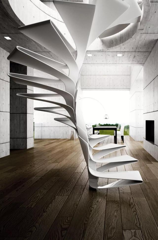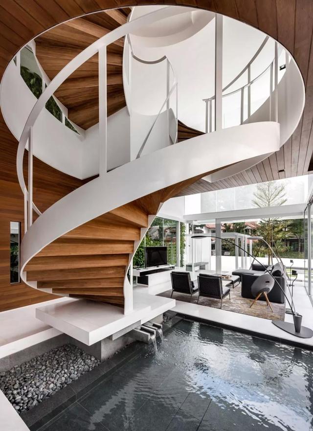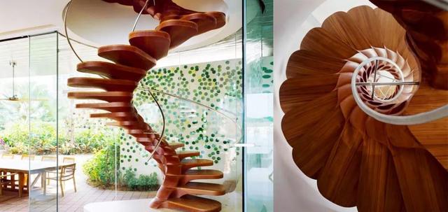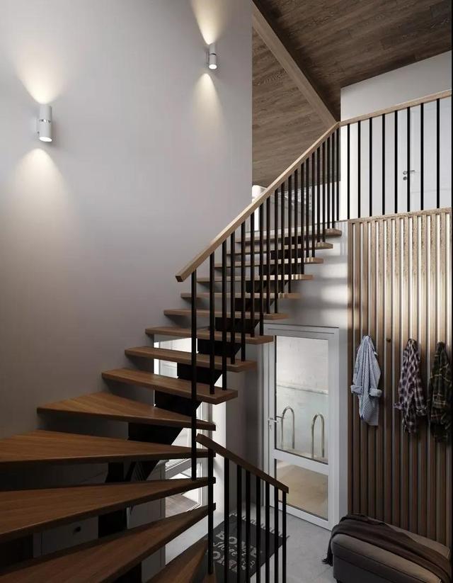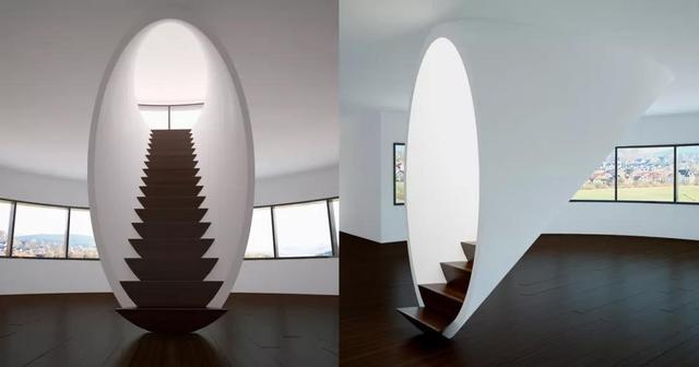 當樓梯間的空間不夠?qū)挸ɑ蛘呤切粜蚻oft的戶型可以考慮這種旋轉(zhuǎn)樓梯,占用面積小,盤旋蜿蜒而上,有一種神秘感;