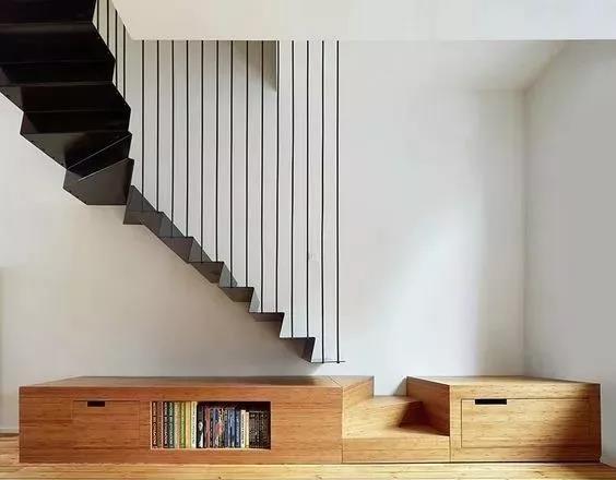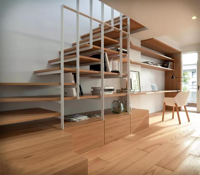 每個家里的實際戶型不同所以在樓梯的設(shè)計上自然也是不盡相同的,如果是小戶型需要考慮儲物那就可以在樓梯下做成儲物柜或者書架的方式這樣既能增加儲物空間又好打理避免衛(wèi)生死角;還可以根據(jù)自己的需求把樓梯底下的空間改造成其他功能空間比如衛(wèi)生間、書房等。