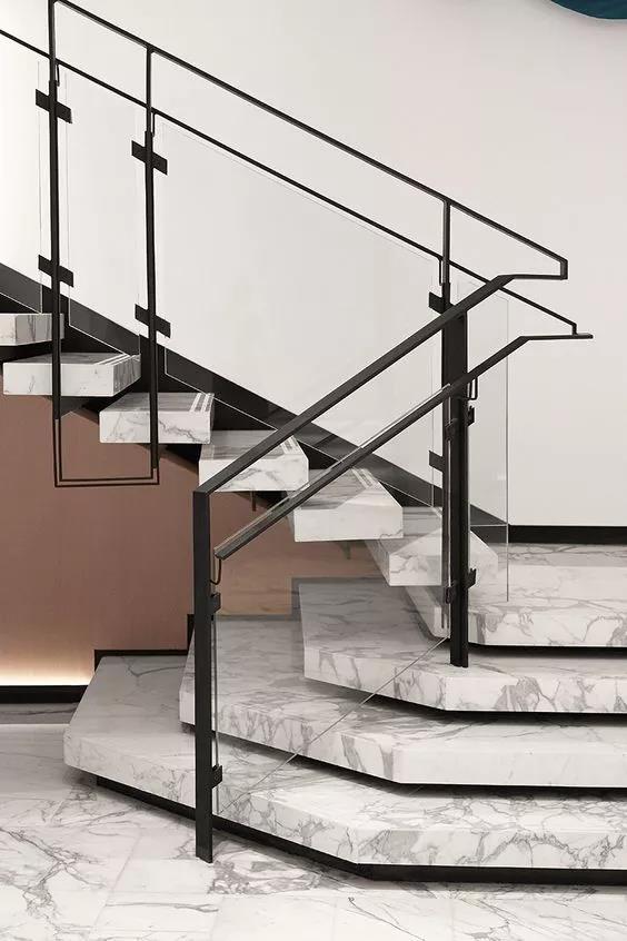 大理石是一種自帶高級感貴氣的石材,當?shù)孛驿佋O(shè)了地磚或者大理石以后可以用大理石來銜接樓梯踏步的裝飾,可塑性和裝飾性都比較優(yōu)秀。