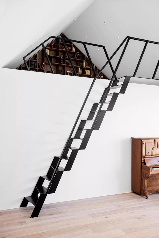 打破傳統(tǒng)的設(shè)計,把臺階做成鏤空的形式,簡潔而優(yōu)雅,只是不太適合一般的室內(nèi)居家使用,可以考慮作為年輕人的空間;