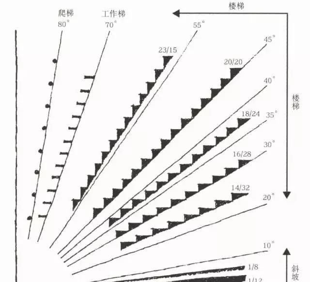 樓梯的常見坡度一般控制在20°~45°之間,以30°左右為佳;但是也要分場合,如果是專用樓梯或者人流量較少的場所樓梯的坡度可以陡一些也可以根據(jù)現(xiàn)場實際情況進行變通,室內(nèi)樓梯一般控制在40°左右即可。