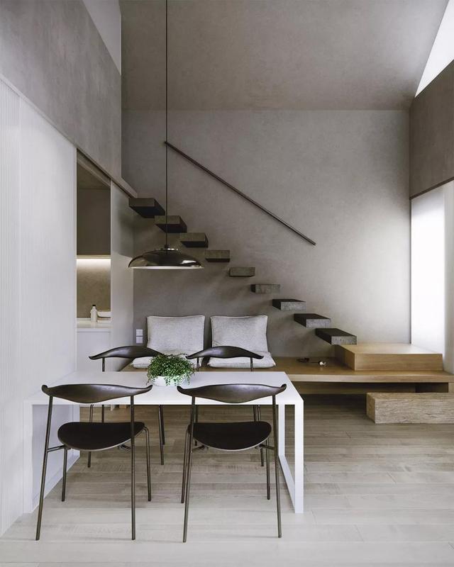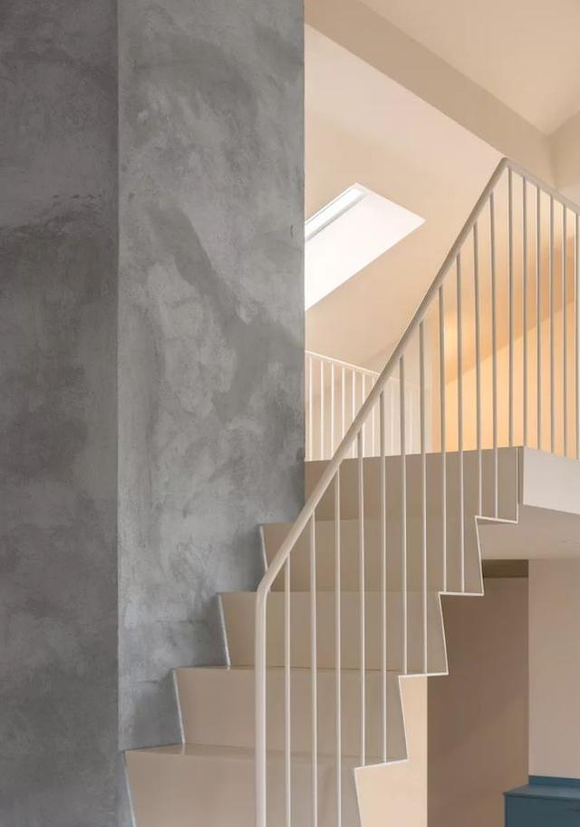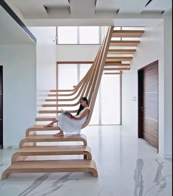 其實樓梯在設(shè)計上還是有很多可以創(chuàng)意的地方,比如把樓梯和扶手連接在一起,這樣就可以做成一個凳子的形式,平常還可以坐在上面休閑而且圓弧的角度看起來十分的舒適;