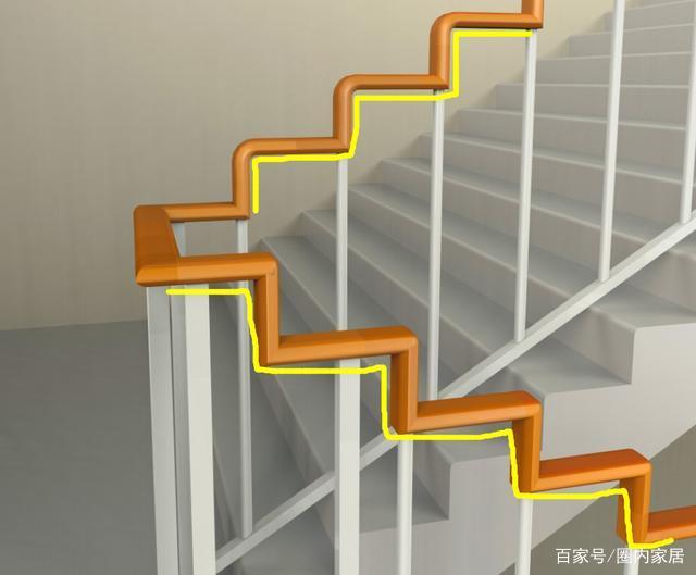 這種直線扶手雖然簡潔明朗,但是實際使用的時候,很多人都會感覺借不上力,而和臺階同步的樓梯扶手,則是90度轉角的設計,每一個扶手都和臺階相對應,從側面看,就像是臺階一樣!